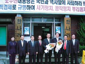 김문규(천안3)·강태봉(아산 2)충남도의회 부의장이 지난 8월 25일 한나라당에 공식입당했다. 이들은 입당 기자회견에서 “지금 우리 국민