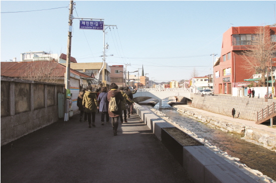 화려한 시절을 잃었다고 하지만, 지금 모습 그대로의 평화로움이 인상적이었던 공주 구도심. 옛 문화유산들은 나지막하고 단정한 건물들 속에서 태연하게 조화를 이뤘다. 구도심 재생사업 일환으로 정비된 제민천은 그런 도심 속에서 쉼터와 같은 역할을 했다.