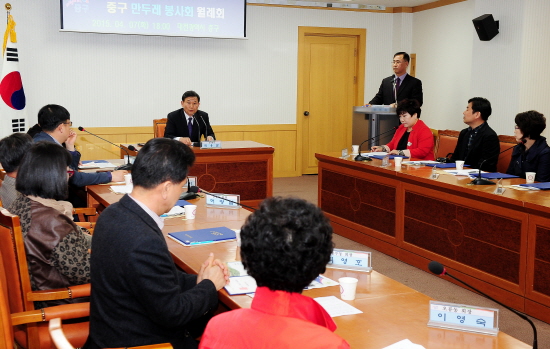 7일 오후 6시 청내 중회의실에서 동 주민센터 만두레봉사회 회장을 중구 협의회 회원으로 위촉하는 행사가 있었다. 이 자리는 회원들의 사기를 진작하고 격려하며, 지역사회 문제 해결을 위한 선두 주자로써 긍지와 자부심을 심어주어 열정적인 활동을 독려하고자 마련했다.