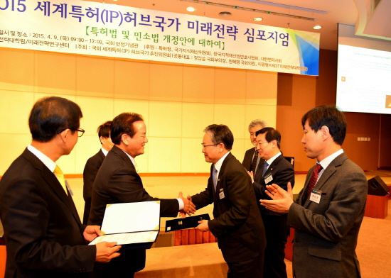 한편, 특허허브추진위는 이날 오전 9시 국회 헌정기념관에서 특허법 및 민사소송법 개정안을 주제로 ‘2015 세계 특허 허브국가 미래전략’ 심포지엄을 개최했다. 이번 심포지엄은 특별강연과 미래전략대상시상식, 특허법·민사소송법 개정안에 관한 종합토론으로 나눠 진행됐다.