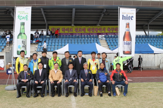 이번 '제1회하이트진로배 대전시 생활체육 축구대회'는 하이트진로(본부장 하만욱)와 대전시생활체육 축구연합회(회장 김명진)가 공동으로 주최하는 뜻깊은 대회로 5개구에서 총 24개팀이 참여하여 기량을 맘껏 발휘하였으며, 축구를 사랑하는 대전시민들과 함께 화합의 장을 만드는 축제 한마당이었다
