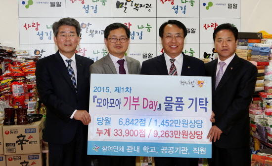 대전 동구(구청장 한현택)의 대표적 복지브랜드인 ‘천사의 손길 행복+’와 함께 신개념 기부문화를 이끌고 있는 ‘모아모아 기부DAY'의 올해 첫 행사가 13일, 밀알복지관에서 있었다.