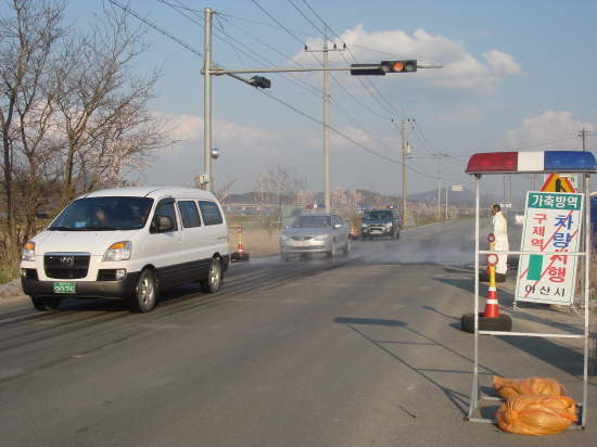같은 기간 시는 가축 전염병의 확산 방지를 위해 총 6개의 거점초소(갈매초소, 농심초소, 외암초소, 소동초소, 강청초소, 오목초소)과 9개의 통제초소(쌍암초소, 가산초소, 대흥초소, 남성초소, 오목초소, 궁화초소, 올참초소, 산양초소, 의식초소)를 설치했으며 초소 운영을 위해 누계 294명의 민간인과 218명의 공무원이 투입됐다.