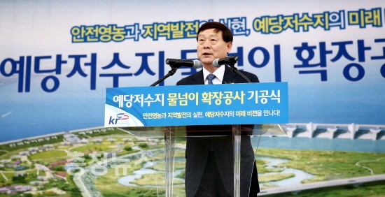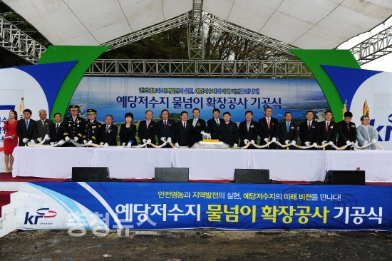 한국농어촌공사가 예당저수지 물넘이확장공사 기공식을 16일 홍문표 국회 예산결산특별위원장, 농림축산식품부 오경태 차관보, 충청남도 허승욱 정무부지사, 황선봉 예산군수, 한국농어촌공사 이상무 사장, 김기영 충남도의장, 한승구 계룡건설 사장 등 1,000여명이 참석한 가운데 저수지 물넘이 하류부 광장에서 개최했다.