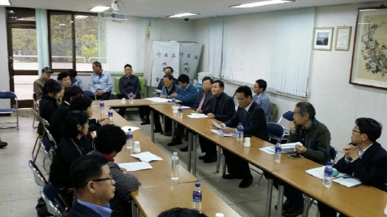 대전시의회 윤기식 행정자치위원장(동구2, 새정치연합)이 16일 오후 4시 동구 판암주공1․2단지아파트 관리사무소에서 경부고속철도변 정비사업 측면도로 건설공사(동구 원동 ~ 판암동 일원)에 따른 도로계획고 조정 등 주민 집단민원을 해소하고자 현장을 점검하고 주민설명회를 가졌다.