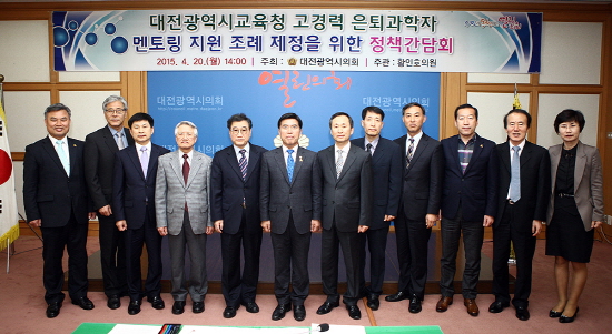 대전시의회(의장 김인식)는 20일 시의회 대회의실에서 황인호부의장 주관으로 “대전광역시교육청 고경력 은퇴과학자 멘토링 지원조례”제정을 위해 관계기관 간담회를 개최했다.
