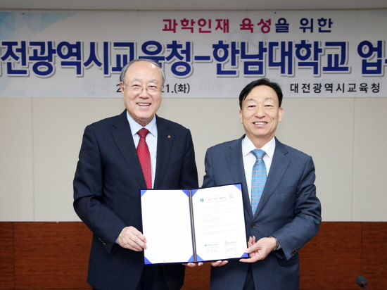 대전시교육청(교육감 설동호)과 한남대학교(총장 김형태)는 21일(화) 오전 11시 30분 시교육청 중회의실에서 과학인재 육성을 위한 업무협약을 체결했다.