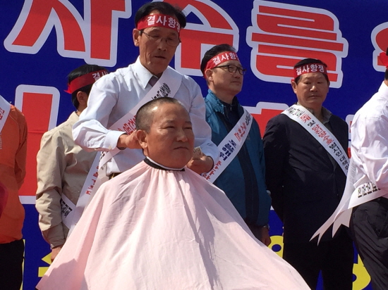 새누리당 김동완 의원(초선, 새누리당)은 23일 당진시민 5천여 명이 참석한 가운데 당진시청에서 열린 ‘당진땅 사수 정부 규탄 궐기대회’에서 중앙분쟁조정위원회의 ‘당진·평택항 매립지 귀속 결정'을 규탄하며 강력한 항의의 뜻으로 삭발했다.