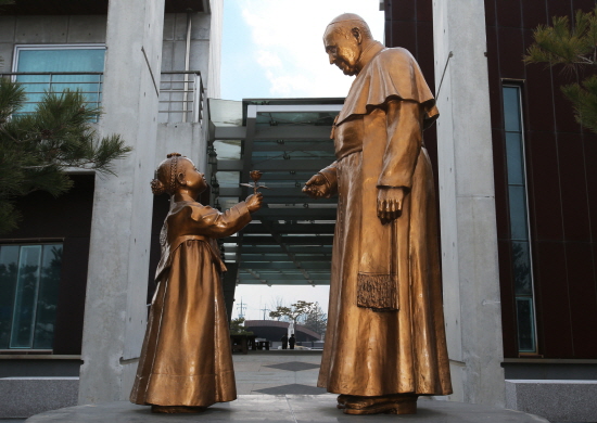 지난해 8월 15일 충남 당진시 솔뫼성지에서 프란치스코 교황이 천주교 아시아 청년들에게 전한 사랑과 평화 그리고 화합의 메시지가 종교를 초월해 국민들의 가슴속에 깊은 감동과 여운을 주고 있는 가운데, 프란치스코 교황이 다녀갔던 솔뫼성지에 동상이 건립돼 그날의 짧았던 만남의 아쉬움을 달래주고 있다.