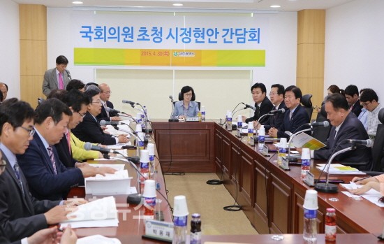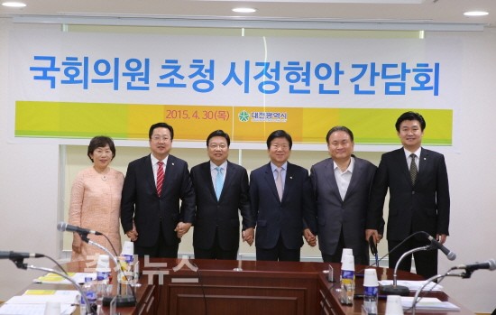 간담회에는 박병석 전 국회부의장(대전 서구갑), 이상민 법제사법 위원장(대전 유성구), 이장우 국회의원(대전 동구), 박범계 국회의원(대전 서구을), 정용기 국회의원(대전 대덕구), 민병주 국회의원(비례대표)이 참여하였으며, 대전시에서는 권선택 시장을 비롯한 시 간부들이 함께 했다.
