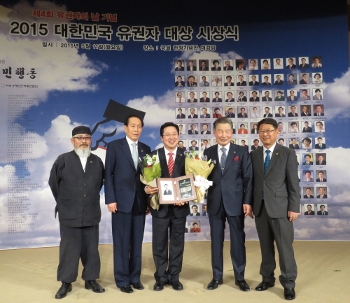 새누리당 이장우 국회의원(대전 동구)이 의정활동을 통해 직능경제인과 중·소상공인의 권익보호에 앞장선 공로를 인정받아 ‘2015 유권자 대상’을 수상했다.