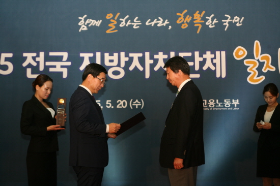 이번 수상은 고용노동부에서 전국 243개 자치단체(광역 17개, 기초 226개)를 대상으로 계획수립, 사업집행, 추진성과 3개 분야의 2014년 일자리 창출 실적을 종합평가한 결과로 시·도 평가위원회 및 중앙평가위원회의 심사과정을 거쳐 선정됐다.