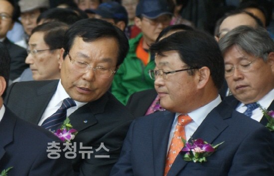 ▲ 박희원 상공회의소 회장과 박성효 전 대전시장이 이야기를 나누고 있다.