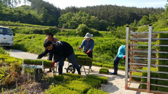 성연면(면장 심현택)사무소 직원 20명은 지난 26일 농가의 작업시기에 맞춰 오전 6시부터 9시까지 성연면 해성리 장기원(58)씨 집을 찾아 모판 나르기 봉사활동 실시했다.