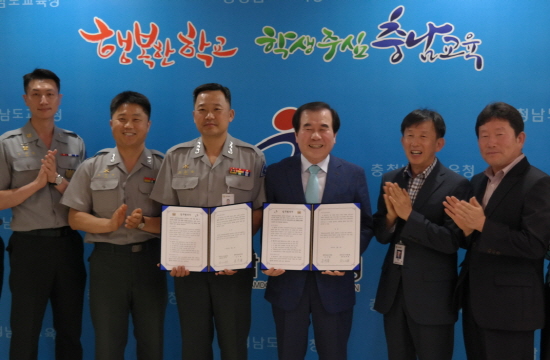 충남도교육청(교육감 김지철)은 1일 오전 접견실에서 군(軍) 관련 진로체험 활성화 및 육군 우수 인재 선발을 위해 상호 적극 협조키로 하고 업무협약을 체결했다.