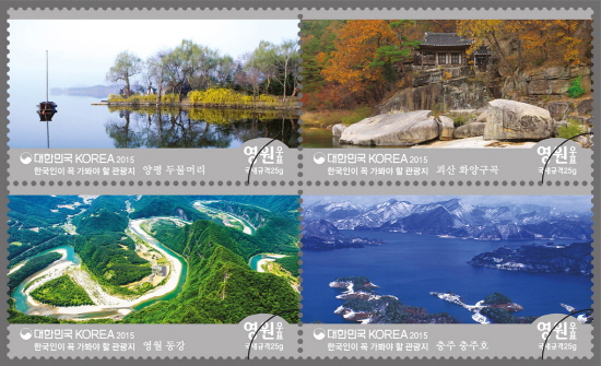 우체국은 우표를 통해 한국관광공사, 문화체육관광부와 함께 한국인이라면 꼭 가봐야 할 우리나라의 관광지를 시리즈로 소개할 계획이다. 충청지방우정청(청장 이승재)은 그 첫 번째 묶음으로 아름다운 수변 절경이 돋보이는 여행지 4곳을 선정해 우표 4종, 100만장을 6월 3일 발행한다고 밝혔다.
