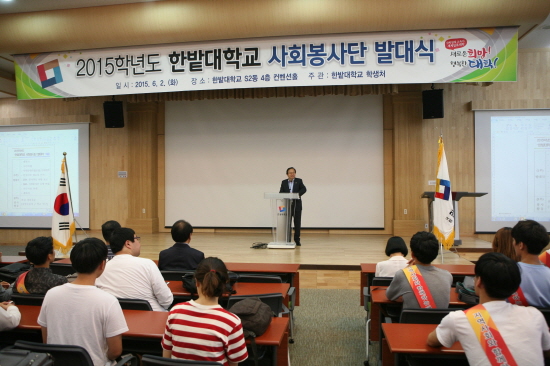 한밭대(총장 송하영)는 2일 오후 5시 복지후생관 컨벤션홀에서 학생·교직원이 함께 참여하는 ‘한밭대학교 사회봉사단 2015년 발대식’을 가졌다.