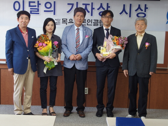 목요언론인클럽은 4일 오전 이달의 기자 상 시상식을 열고 금년 2분기 수상자들에게 상금과 상패를 수여했다. 이번 수상자는 신문부문 세종의 소리 곽우석 기자, 방송부문 대전KBS 성용희, 강욱현 기자이다.