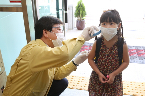 최 교육감은 이 유치원에서 오전 8시를 전후해 등원하는 유치원생들을 대상으로 발열 여부를 체크하고 시설 전반의 감염병 예방 상태를 면밀히 살폈다.