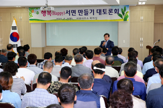 서면사무소(면장 이정성)는 지난 9일 문화와 관광의 공존을 통한 지속 가능한 서면 발전의 비전과 면민이 행복하고, 다시 찾고 싶은 서면 만들기! 미션으로 행복(Happy) 서면 만들기 대토론회를 면사무소에서 가졌다.