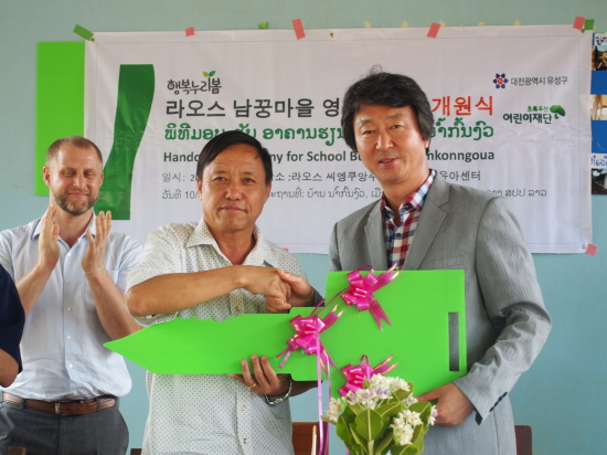 유성구와 어린이재단이 함께 ‘지구촌 빈민아동 교육지원을 위한 해외아동 사업’으로 추진한 라오스 영유아센터 지원 조성사업이 완료됨에 따라 10일 개관식을 갖고 본격적인 운영에 들어갔다.