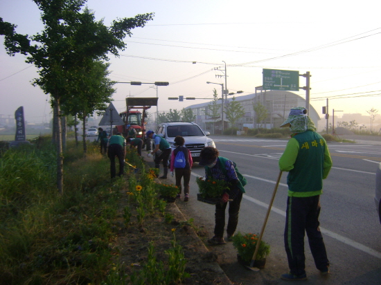 아산시 둔포면 남녀 새마을지도자협의회(회장 김광국, 부녀회장 유영숙)는 지난 11부터 이틀간 지도자 30여명이 참여한 가운데 둔포체육공원과 국도45호선 버스승강장 가로화단 주변 꽃길 가꾸기 작업을 실시했다.