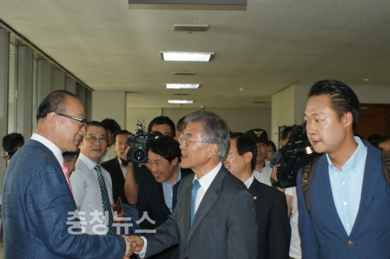 한편 문재인 대표는 고법 앞에서 권선택 시장의 손을 잡으며 316호 법정까지 동행했으며 지지자들과 일일이 악수를 하고 법원을 떠났다.