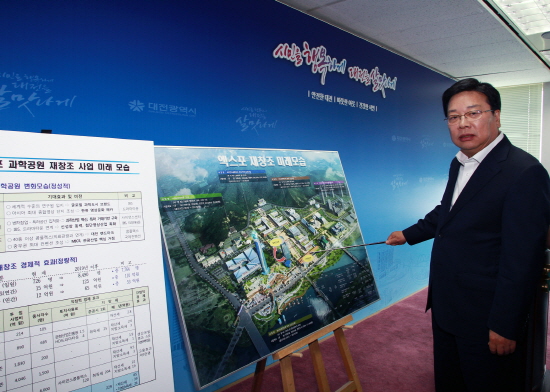 권선택 대전시장은 16일 기자회견을 열어 미래부, 특허청, 신세계 등 관련 기관들과의 협상 타결로 미래부의 사이언스센터 조성비(500억) 부담약속을 마무리 짓고 앞으로 엑스포 재창조 사업 추진에 박차를 가하기로 했다고 밝혔다.