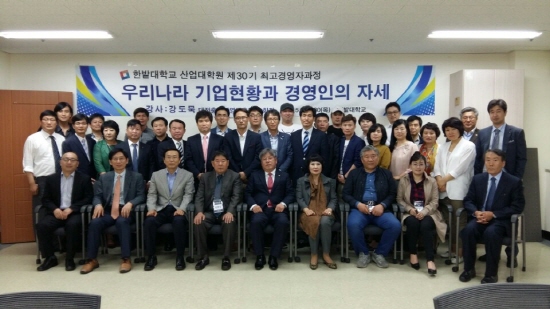 한밭대 산업대학원 최고경영자과정은 급변하는 경영환경을 극복하는 데 필요한 경영전략을 배우고, 현재 제30기까지 배출한 2,400여명의 선후배와 인적교류를 통하여 다양한 계층과의 인적 네트워크 형성에 큰 도움을 주고 있다.