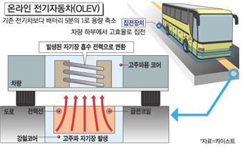 무선충전 전기버스(올레브)는 국토교통부 등 정부의 지원을 받아 한국과학기술원(KAIST)이 개발한 첨단 신교통수단으로 주행과 정차 중에 무선으로 전력을 공급받아 운행할 수 있는 전기버스로 지난 2013년 자동차 안전인증 및 충전 시 전자파 안전인증 등을 완료했다.