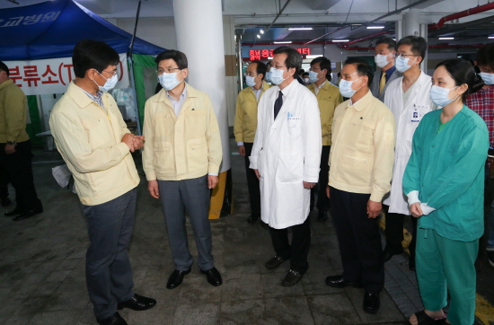 안 지사는 이날 황 신임 총리와 단국대병원 응급실 앞 임시진료시설 등을 살핀 뒤, 병원측으로부터 확진자 치료 및 의심환자 진료 등 운영 현황을 들으며 관계자들을 위로했다.