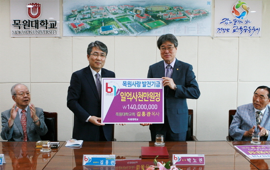 목원대학교(총장 박노권)는 24일(수) 오전 10시 대학본부 회의실을 방문한 목원대학교회(담임목사 김홍관)로부터 1억 4천만원의 대학발전기금을 기탁받았다.