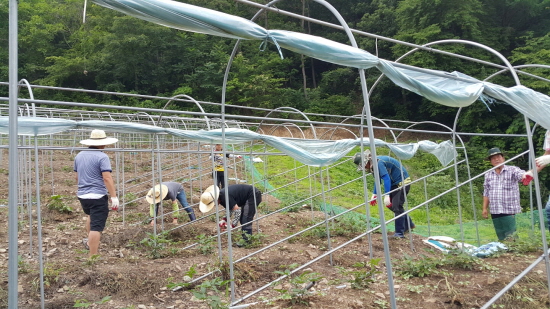 아산시 자치행정과는 지난 24일 자매결연 마을인 송악면 거산1리(이장 석명호)를 찾아 농촌사랑 일환으로 지역주민과 함께 마을 내 농가 표고버섯 하우스 풀뽑기, 지역주민내 밭 풀뽑기 등 농촌일손돕기에 동참했다고 밝혔다.