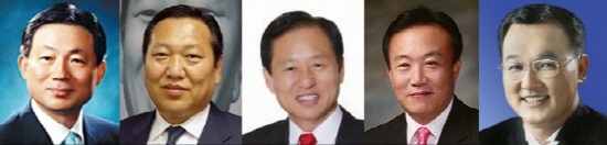 ▲ 왼쪽부터 박찬우 前 안행부차관, 최민기 前 천안시의회 의장, 이정원 前 천안시의회 의장,정순평 前 충남도의원, 김수진 前 황우여 새누리당 대표 언론특보