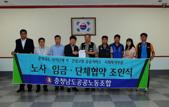 예산군은 지난 6일 군청 제1회의실에서 충청남도공공노동조합(위원장 정경근)과 ‘2015년도 공무직 근로자 임금협약 조인식’을 가졌다고 7일 밝혔다.