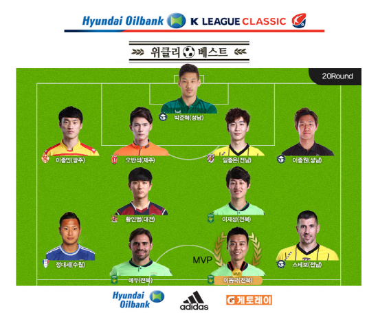 대전시티즌 미드필더 황인범이 ‘현대오일뱅크 K리그 클래식 2015’ 20라운드 위클리 베스트에 선정됐다.