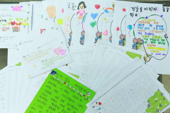 한 학생은 “무거운 옷을 입고 땀을 흘리시는 모습을 TV에서 보았어요! 환자를 위해 애쓰시는 분들께 힘내시라고 말씀드리고 싶어요! 사랑합니다! 최고 십니다!” 라고 썻다.