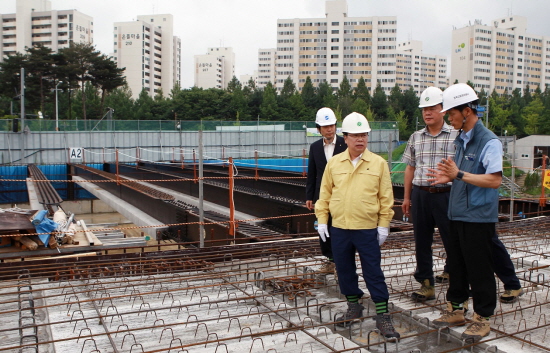 권선택 대전시장은 23일 오전 10시 서구 만년동 갑천삼거리 일원 융합의 다리(카이스트교) 대형건설공사 현장을 방문, 공사 관계자와 자연재난 관련부서 공무원 등이 참석한 가운데 공사 추진상황을 점검했다.