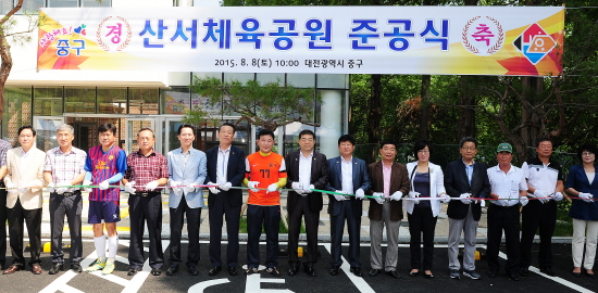 대전시 중구(구청장 박용갑)는 8일 주민들의 건강증진과 생활체육 인프라 확충을 위한 산서체육공원 조성을 완료하고 박용갑 청장을 비롯한 내빈과 지역주민 등 200여 명이 참석한 가운데 준공식을 가졌다.