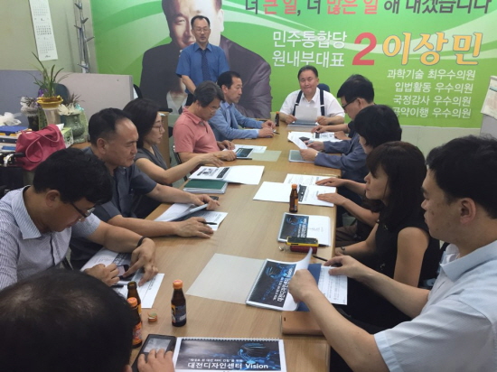 이상민 법제사법위원장(새정치민주연합,대전유성)이 10일 오후4시 이상민의원 대전사무실에서 대전디자인연대 임원진들과 대전디자인센터 예산확보 관련하여 간담회를 가졌다.