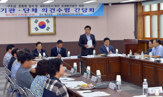내포특위는 이날 예산군청에서 주요 기관·단체, 지역민 의견 수렴 간담회를 열고 구도심 활성화 방안에 머리를 맞댔다.