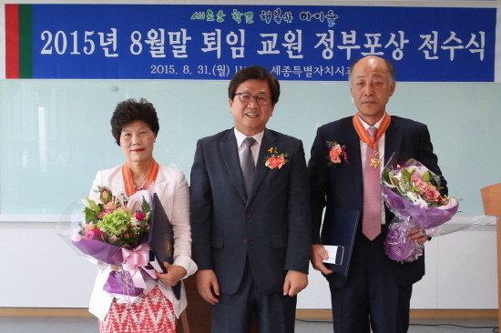 세종특별자치시교육청(교육감 최교진, 이하 세종시교육청)이 31일 시교육청 대회의실에서 2015년 8월말 퇴직(정년・명예퇴직)교원에 대한 정부포상 전수식을 거행했다.