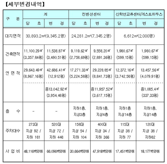 대전시 관계자는 설계변경의 불가피한 사유로 “타 지역 컨벤션 센터보다 규모가 작어 대규모 국제회의 유치에 어려움이 예상 된다”는 것이다.