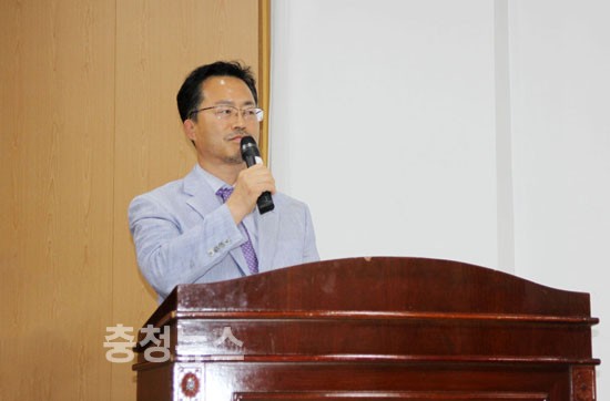 ▲ 전제모 회장이 제22대 총동문회장에 선출되어 당선 인사를 하고 있다