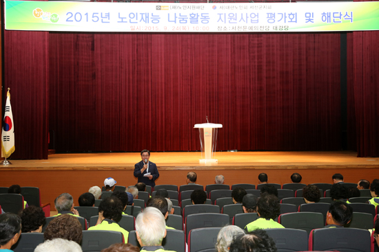 (사)대한노인회 서천군지회(지회장 김준철)가 9월 24일 서천군 문예의 전당에서 2015년 노인재능나눔활동지원사업(이하 ‘재능나눔활동’) 평가회 및 해단식을 가졌다.
