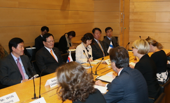 또 정 의장은 핀란드가 헬싱키프로세스를 통해 유럽안보협력기구(OSCE) 탄생에 결정적 역할을 했던 경험을 바탕으로 북핵문제 해결 한반도 평화통일에 대한 지지해 줄 것을 당부했다.