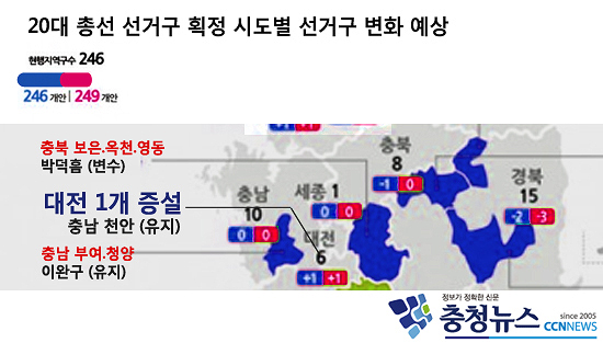 하지만 충북지역은 지역구 의석 수가 현행 246석일 경우 보은ㆍ옥천ㆍ영동은 줄어들게 되고, 249석일 경우네는 '유지'하는 것으로 전해지고 있다..