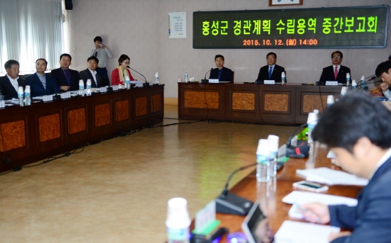 12일 군청회의실에서 홍성군 경관계획 수립용역 중간보고회가 김석환 군수를 비롯한 류순구 홍성부군수와 각 실과장, 홍성경찰서 관계자 및 한국디자인진흥원 연구원 등 40여명이 참석한 가운데 개최했다.