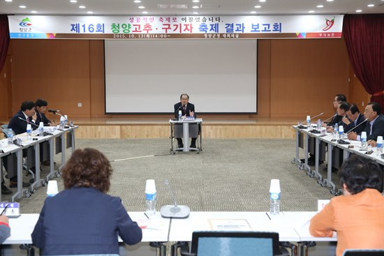 청양고추·구기자축제추진위원회는 지난 13일 청양군청 대회의실에서 위원 및 군 실과장 등 50여명이 참석한 가운데 제16회 청양고추‧구기자축제 추진결과 보고회를 개최하고 이번 축제 평가 및 발전방안에 대해 토론하는 자리를 가졌다.