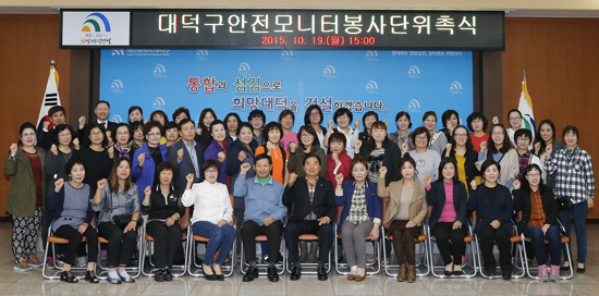 박수범 대덕구청장이 19일 구청 중회의실에서 안전모니터봉사단 60여명이 참석한 가운데 대덕구 안전모니터봉사단 위촉식과 역량강화 교육을 실시했다.